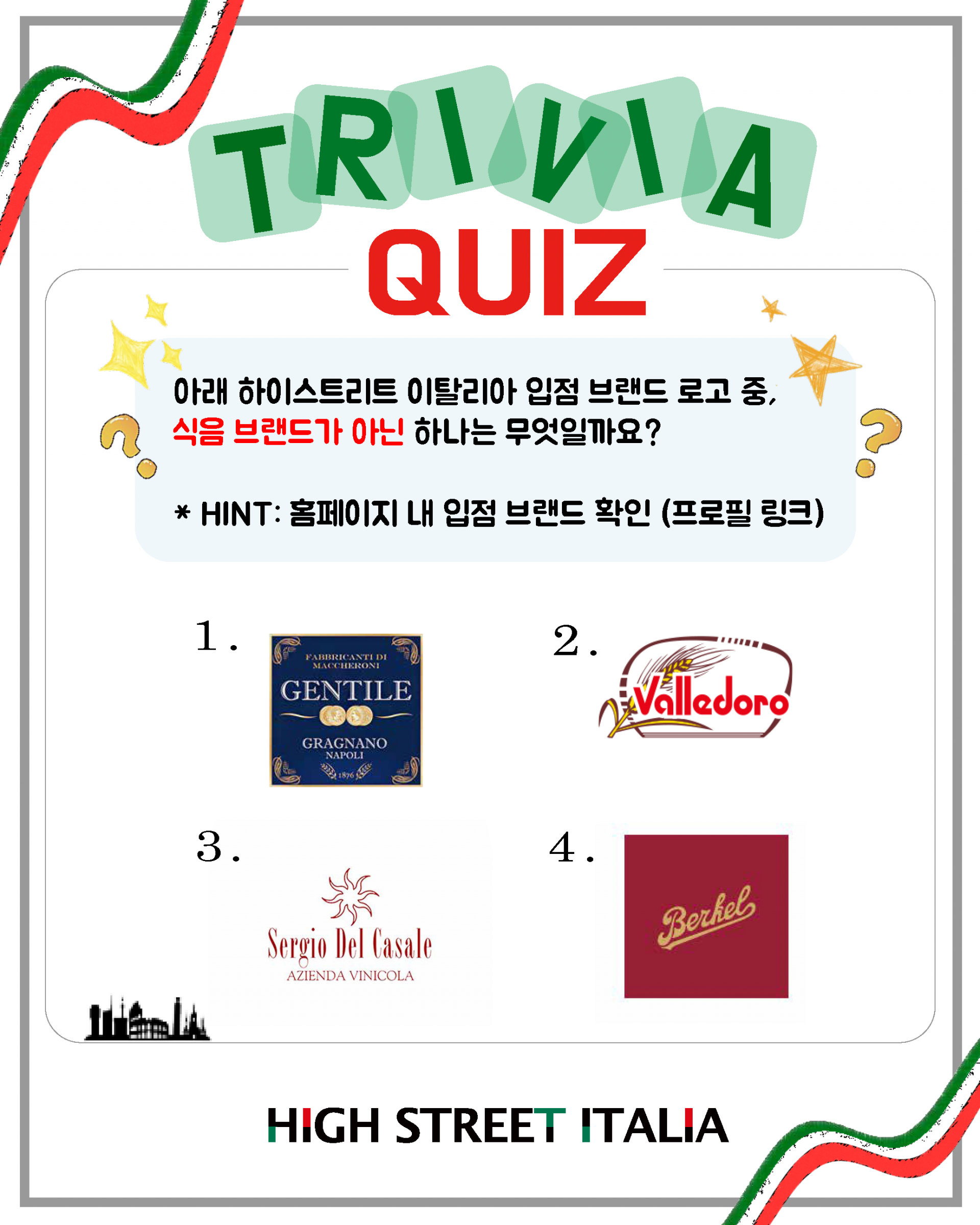 하이스트리트 이탈리아 인스타그램 퀴즈 이벤트!